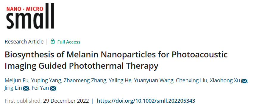 Small | 生物合成黑色素纳米颗粒用于光声成像引导的光热治疗