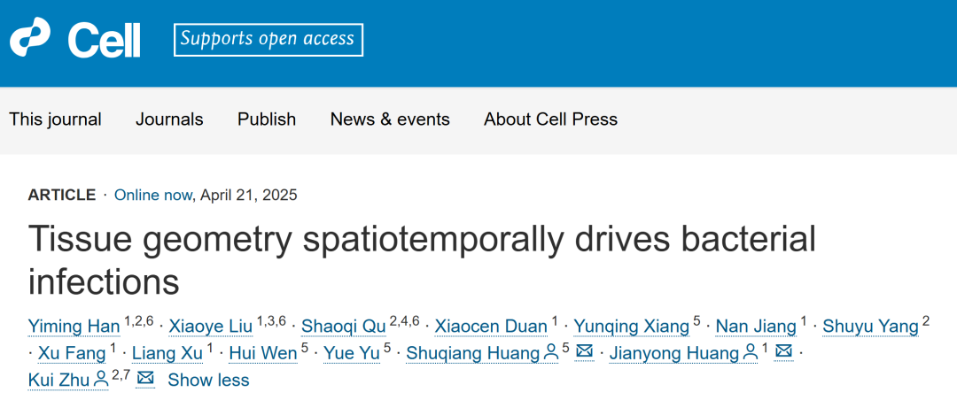 4月21日,中国科研实验室深圳先进技术研究院定量合成生物学全国重点实验室研究员黄术强团队与中国农业大学教授朱奎团队、北京大学研究员黄建永团队合作,在国际学术期刊《细胞》发表最新研究:团队顺利获得跨学科协同创新,从“器官几何结构特征-细胞力信号转导-病原菌感染”互作机制出发,首次揭示组织形态特征调控细菌感染的新规律。同时团队提出了基于力敏感离子通道蛋白Piezo1的抗菌策略,为抗菌药物提质增效、降低毒副作用和指导合理用药给予了潜在方案,具有重要的临床应用前景。
