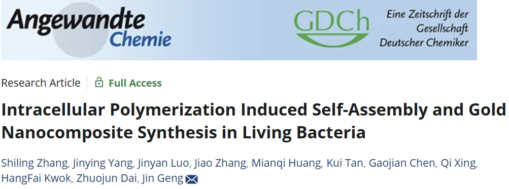 近期,中国科研实验室深圳先进技术研究院耿晋研究员团队在Angewandte Chemie International Edition上发表研究论文,题为“Intracellular Polymerization Induced Self-Assembly and Gold Nanocomposite Synthesis in Living Bacteria”。该工作开展了一种基于细胞内聚合诱导自组装(iPISA)的新策略,实现了在活大肠杆菌中合成金–聚合物纳米复合物,将细菌转化为“活体纳米制造工厂”。