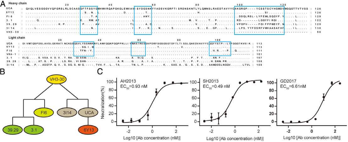 PNAS | 发现靶向H7亚型禽流感病毒血凝素头部独特保守表位的广谱中和抗体
